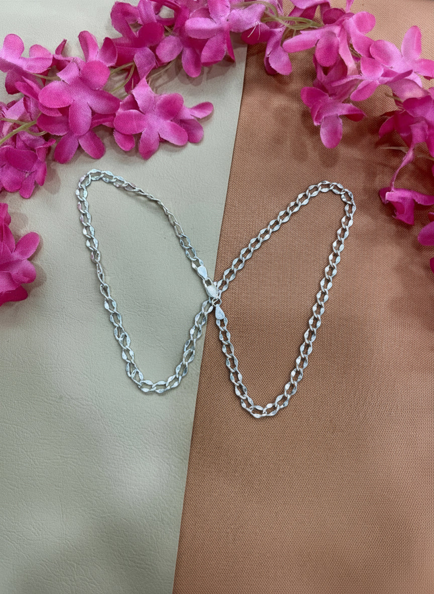 Made from high-quality 925 sterling silver, this chain offers a classy and timeless look. Its shiny, smooth links reflect light beautifully, adding elegance to any outfit. Suitable for both men and women, it can be worn alone or with a pendant. It’s strong, won’t easily tarnish, and is gentle on the skin — a simple, stylish piece made to last.