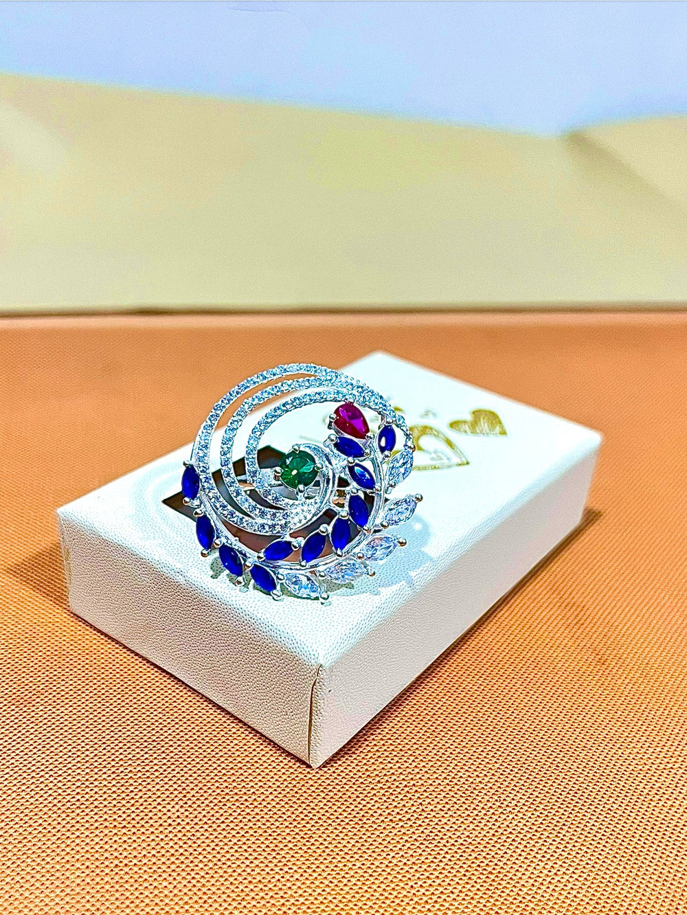 Silver Multicolour Stone premium Ring weight 8.00gm
