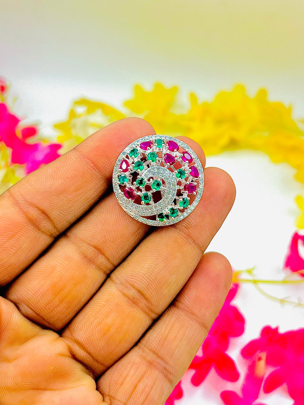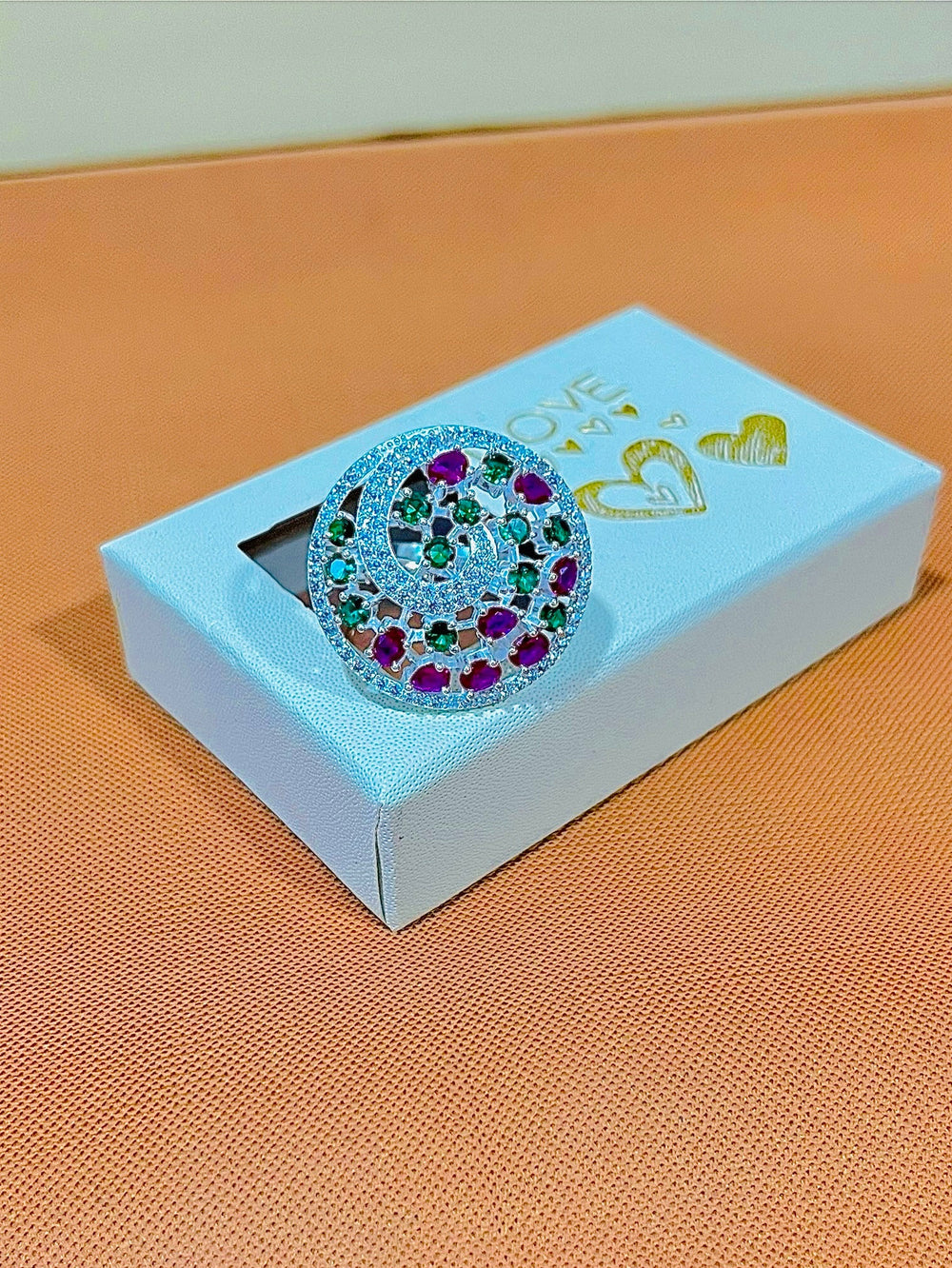 Silver Multicolour Stone premium Ring weight 6.90 gm
