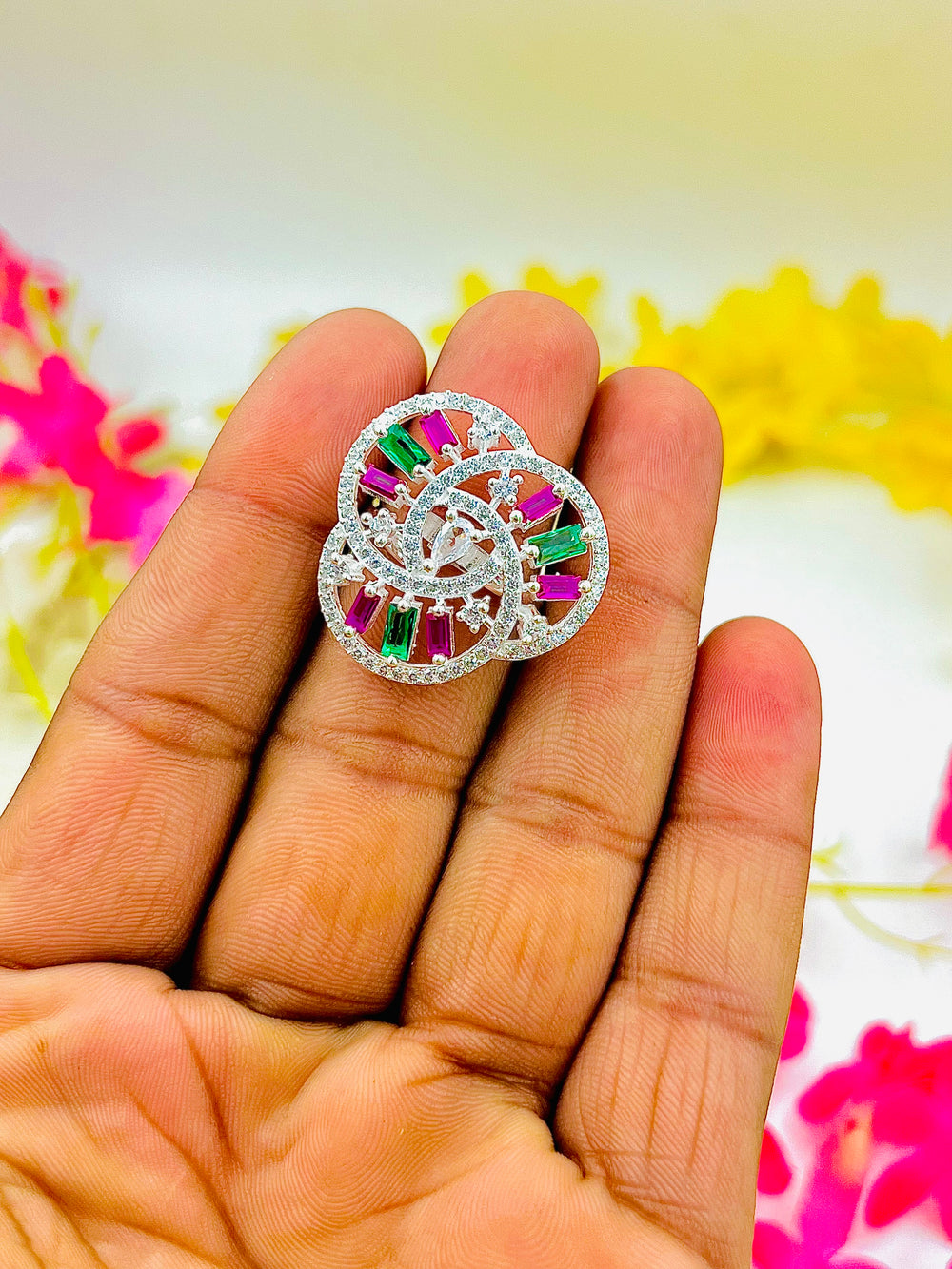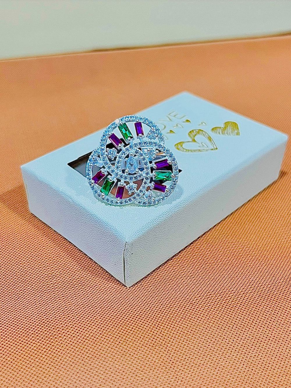 Silver Multicolour Stone premium Ring weight 6.10 gm