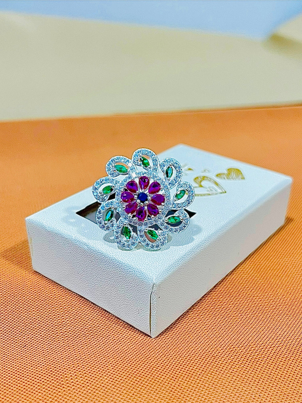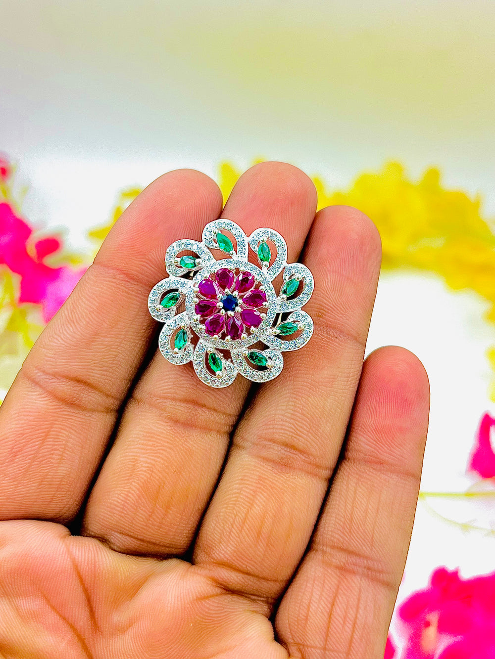 Silver Multicolour Stone premium Ring weight 6.90 gm