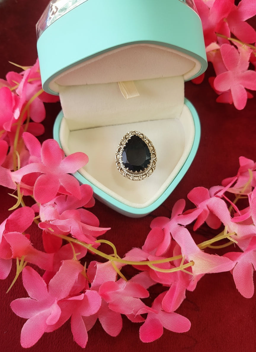 This silver cut-stone ring is a beautiful and elegant piece. It has a shiny gemstone set in smooth 925 sterling silver that reflects light beautifully. The simple, modern band makes the stone stand out, and the polished silver gives the ring a bright, luxurious look.