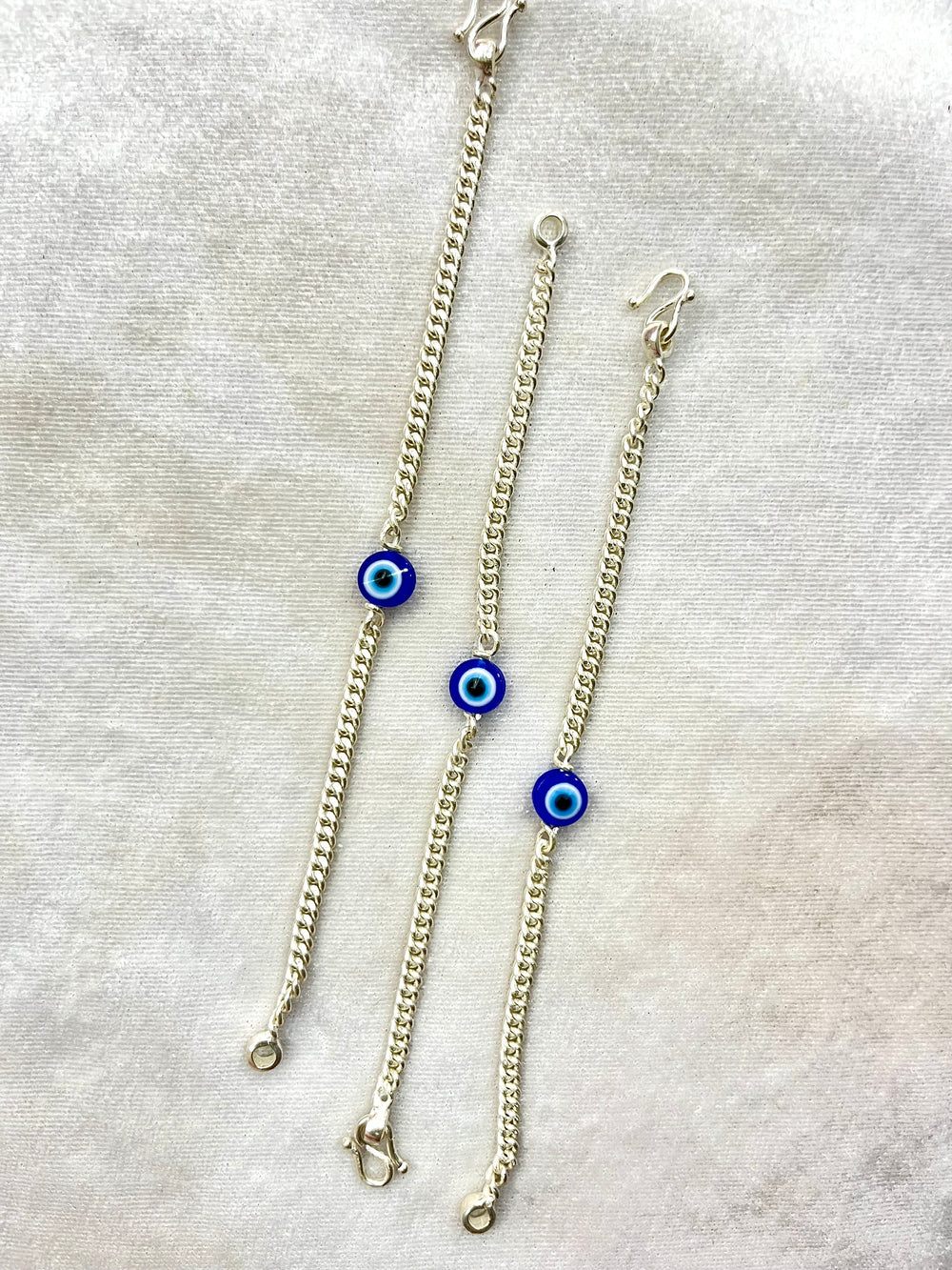 A silver evil eye bracelet is a graceful blend of elegance and timeless beauty. Crafted from fine sterling silver, it radiates a soft, luminous glow that enhances any outfit.