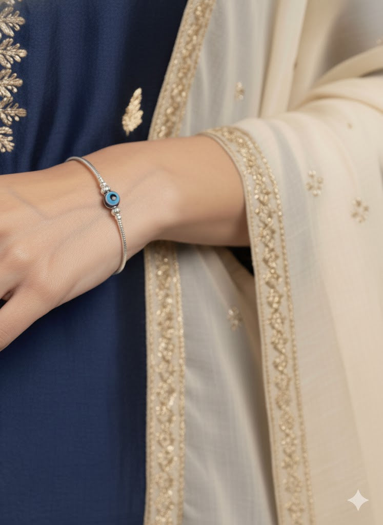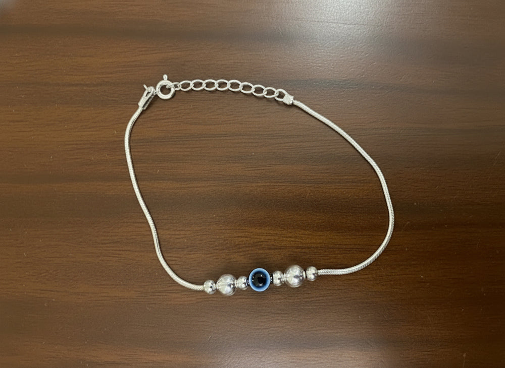 A silver evil eye bracelet is a graceful blend of elegance and timeless beauty. Crafted from fine sterling silver, it radiates a soft, luminous glow that enhances any outfit.