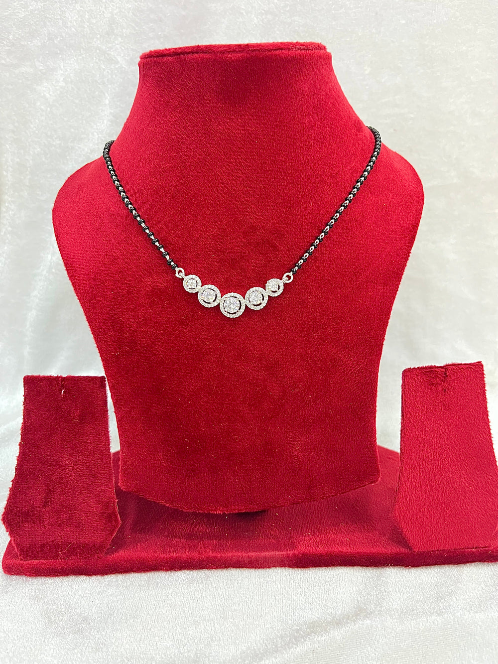 This stunning silver mangalsutra is handcrafted to perfection, showcasing a sleek chain paired with a refined pendant detail. The polished silver finish adds a contemporary touch, while the traditional design preserves its cultural essence. Lightweight, durable, and effortlessly stylish—an ideal expression of love and commitment.