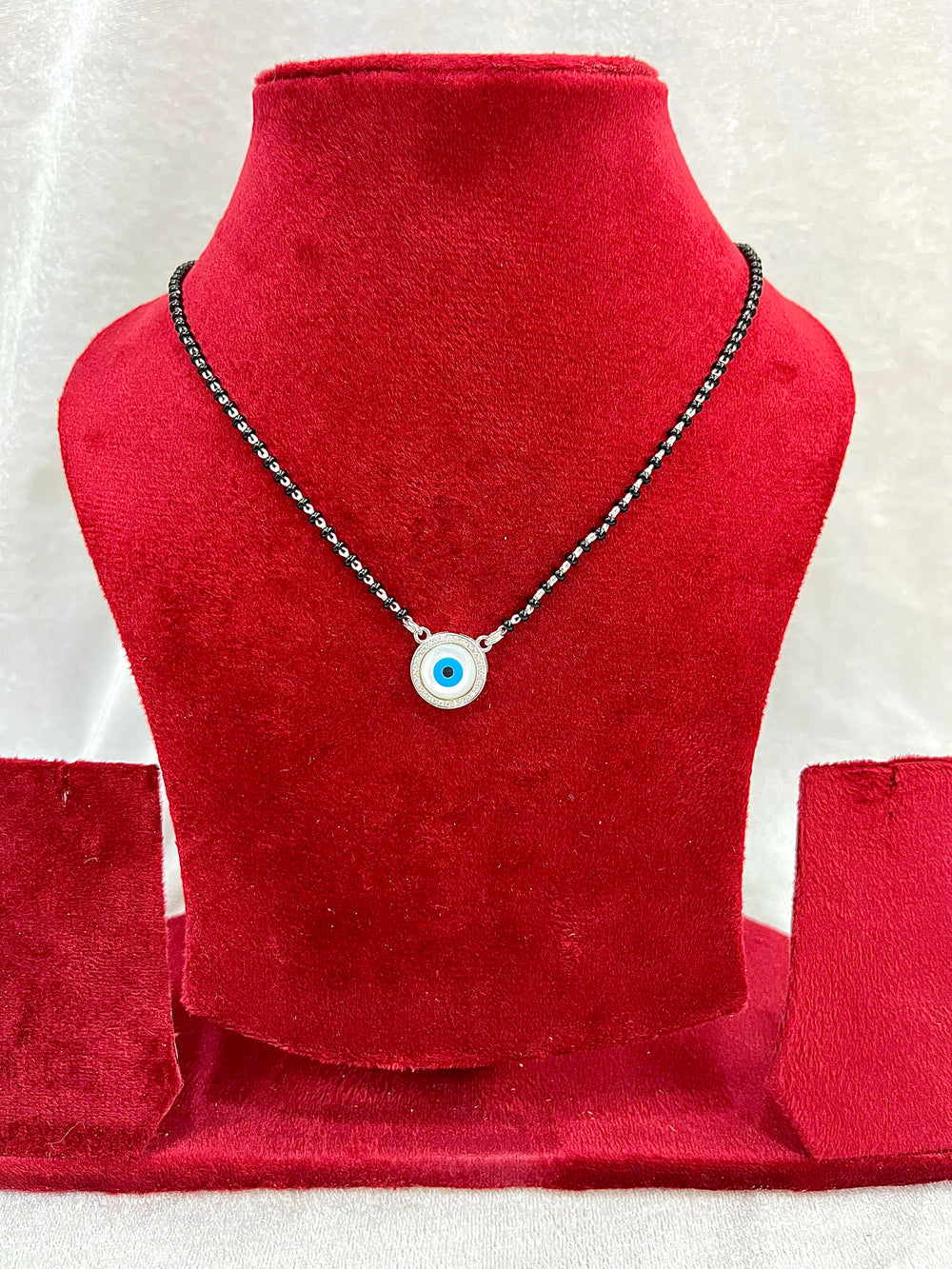 This stunning silver mangalsutra is handcrafted to perfection, showcasing a sleek chain paired with a refined pendant detail. The polished silver finish adds a contemporary touch, while the traditional design preserves its cultural essence. Lightweight, durable, and effortlessly stylish—an ideal expression of love and commitment.