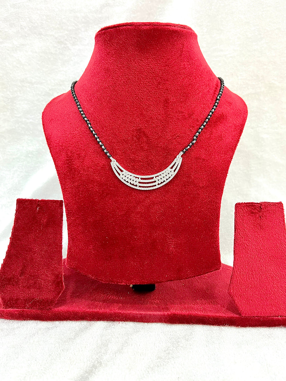 This stunning silver mangalsutra is handcrafted to perfection, showcasing a sleek chain paired with a refined pendant detail. The polished silver finish adds a contemporary touch, while the traditional design preserves its cultural essence. Lightweight, durable, and effortlessly stylish—an ideal expression of love and commitment.