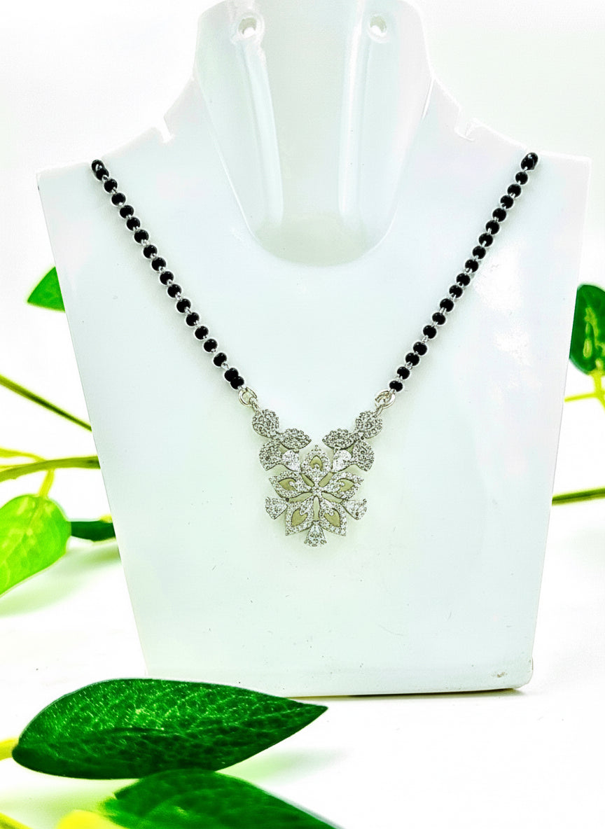 Celebrate timeless elegance with this exquisitely crafted Silver Mangalsutra, designed for the modern woman who cherishes tradition with a contemporary touch. Made from high-quality sterling silver, the pendant features a refined, minimalist motif that beautifully complements the classic black bead chain. Lightweight yet durable, this mangalsutra offers everyday comfort while adding a graceful shine to any attire….