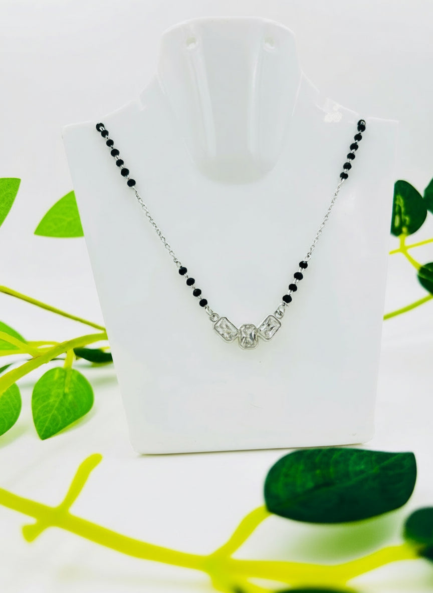 Celebrate timeless elegance with this exquisitely crafted Silver Mangalsutra, designed for the modern woman who cherishes tradition with a contemporary touch. Made from high-quality sterling silver, the pendant features a refined, minimalist motif that beautifully complements the classic black bead chain. Lightweight yet durable, this mangalsutra offers everyday comfort while adding a graceful shine to any attire….