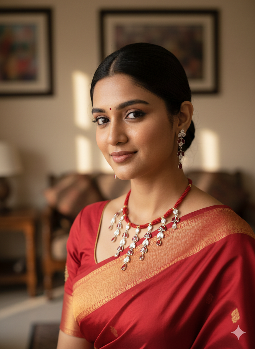 Ideal for weddings, festive celebrations, or elegant evening events, the lightweight design ensures all-day comfort while offering a graceful and luxurious appeal. This silver necklace set effortlessly elevates both traditional and contemporary outfits.