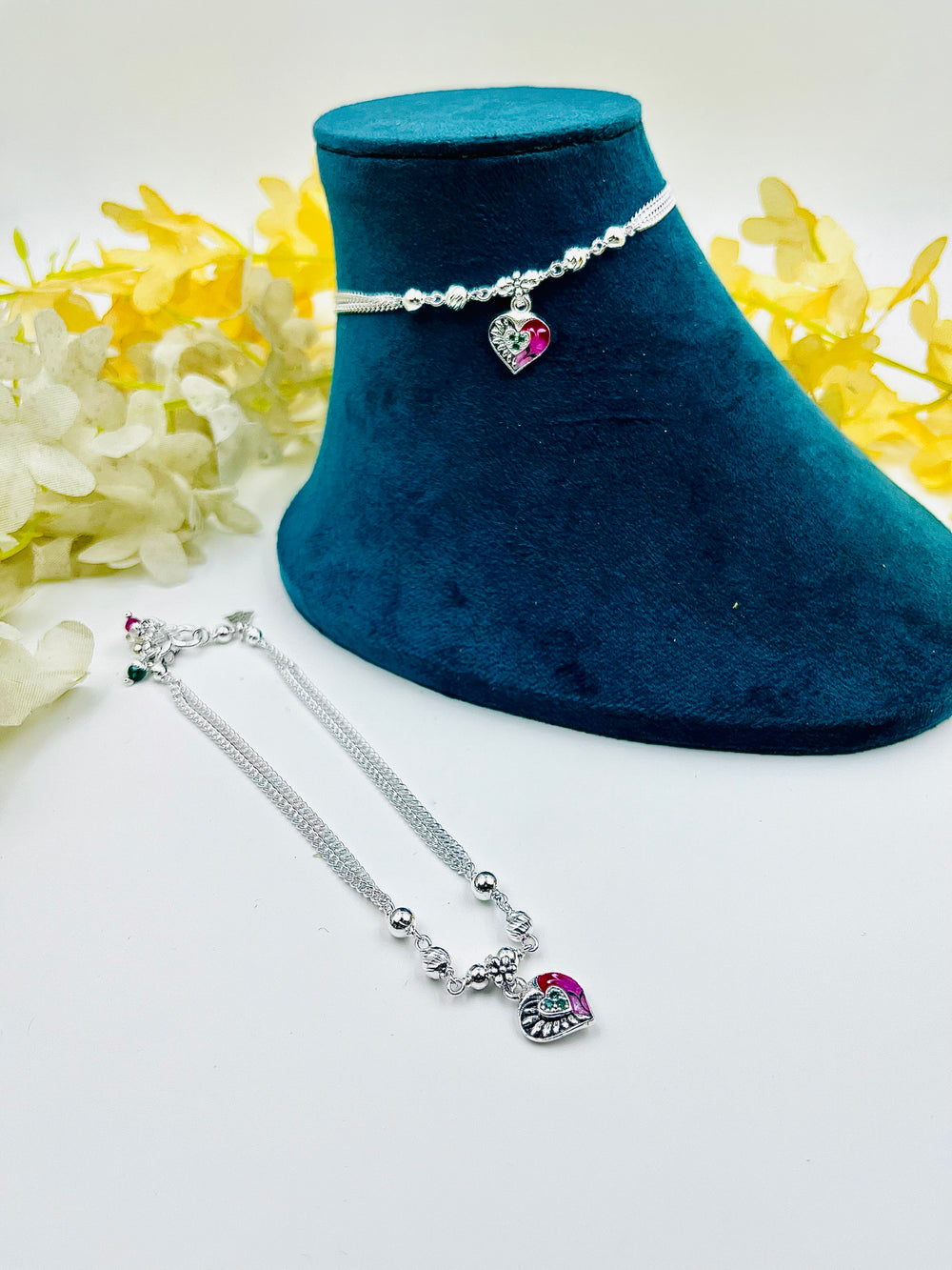 A delicate silver payal crafted with fine artistry, featuring tiny jingling ghungroos that add grace to every step. Perfectly blending tradition and elegance, it shines beautifully on the ankle.