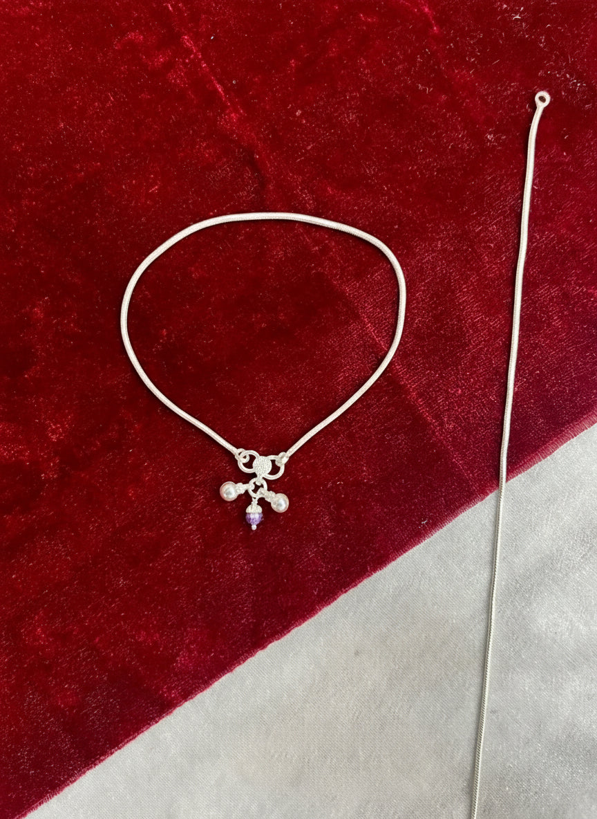 Adorn your feet with the timeless charm of this exquisite Silver Payal, crafted with pure sterling silver and intricate detailing. Designed to capture grace in every step, this anklet combines traditional artistry with a touch of modern sophistication. The gentle jingle of silver bells adds a melodic rhythm, making it perfect for festive occasions or daily wear.