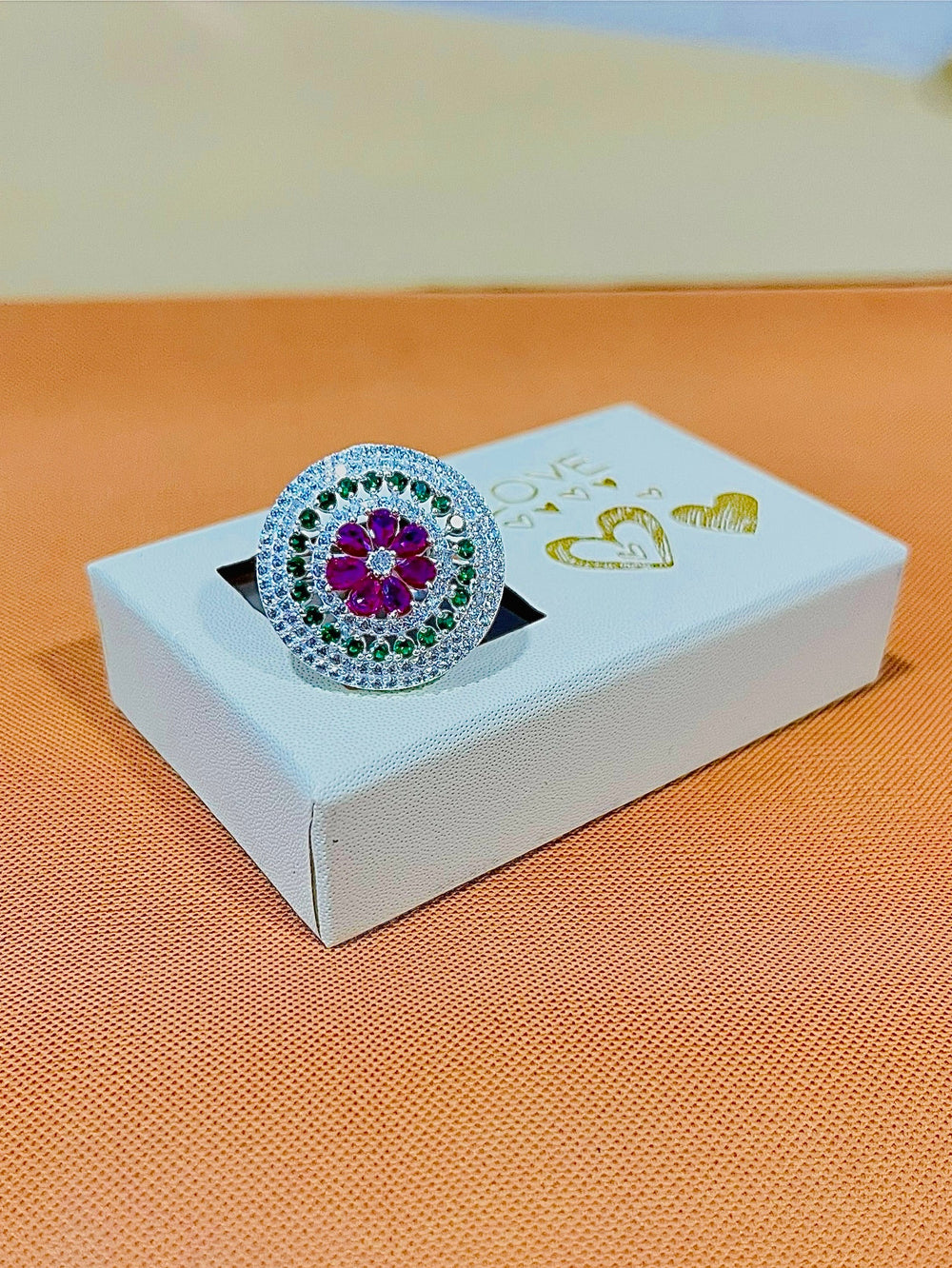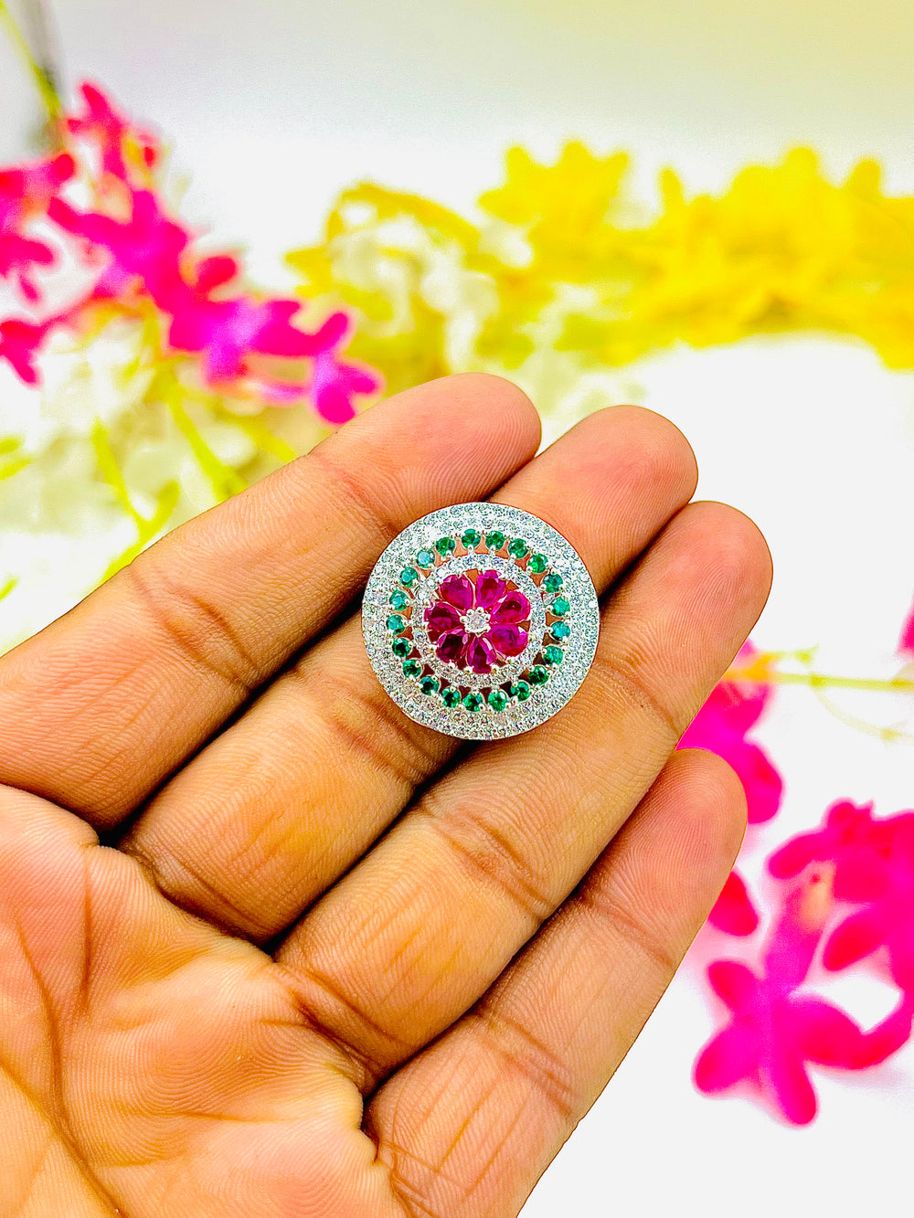 Silver Multicolour Stone premium Ring weight 6.10 gm